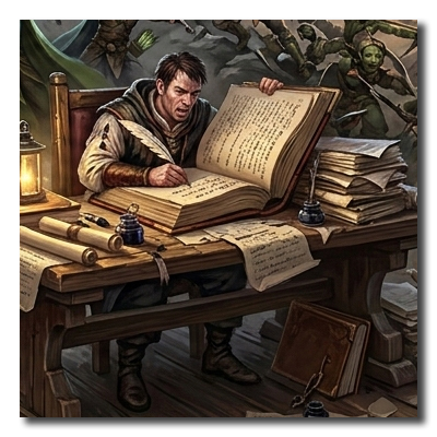 What good are heroic deeds if there’s no one there to write your story. No party is complete without a good scribe documenting all of our brilliant and not so brilliant ideas.